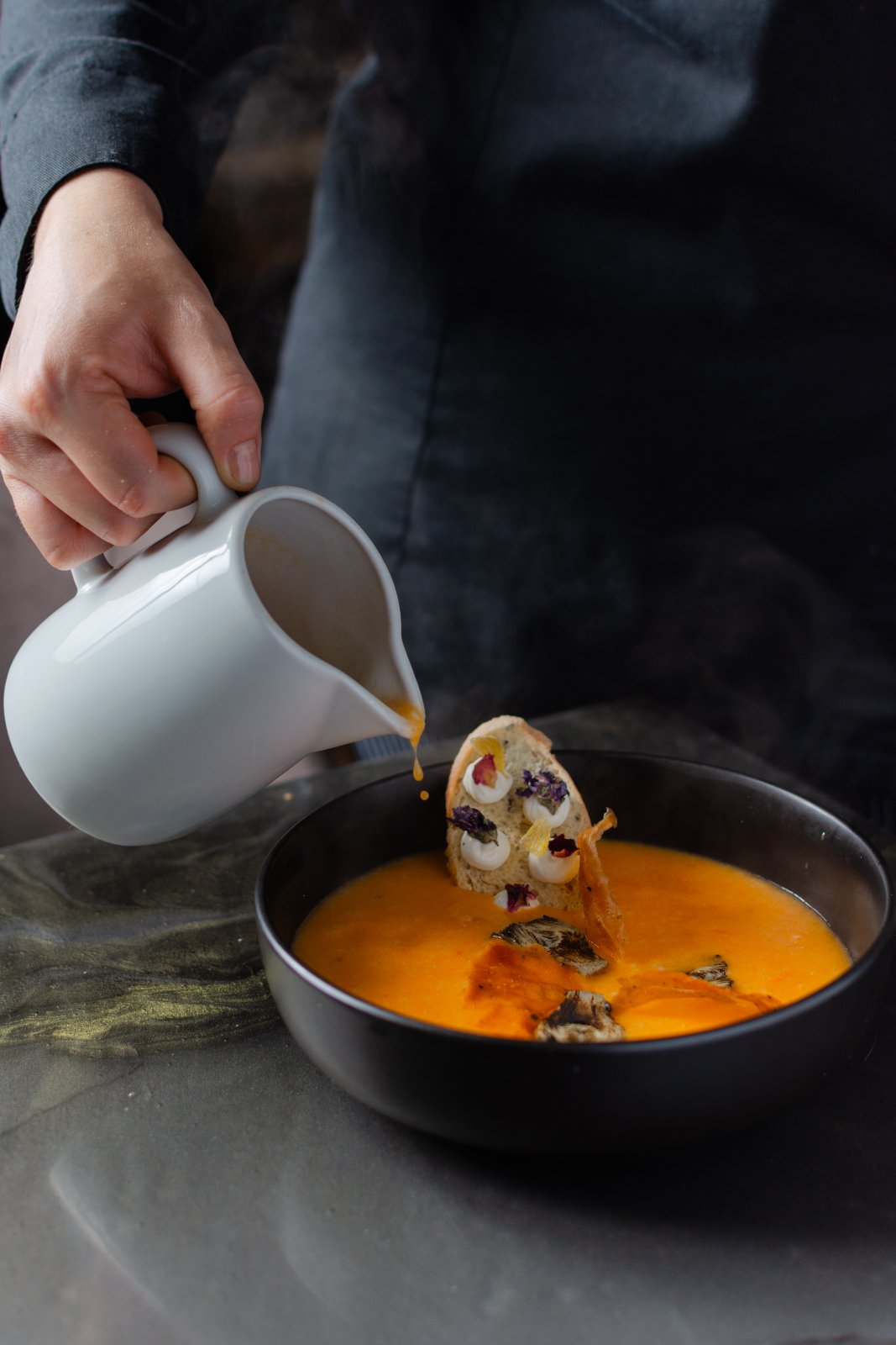 • Ο Pastry Chef Αλέξανδρος Αλεξίου θα ολοκληρώσει το μενού με ένα τραγανό μιλφέιγ. Στην προετοιμασία της γευσιγνωσίας θα συνεισφέρουν σπουδαστές της Σχολής Ανώτερης Επαγγελματικής Κατάρτισης ΣΑΕΚ ΑΚΜΗ.